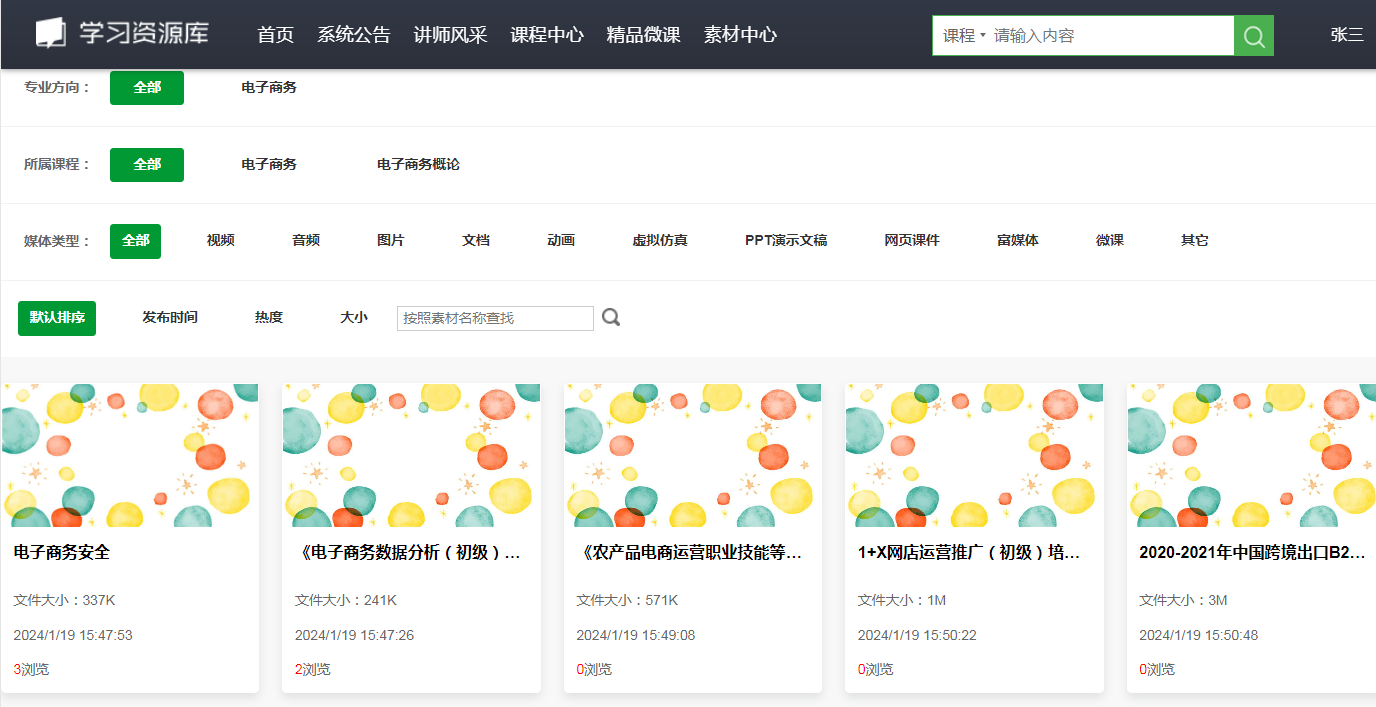 (2)支持(chi)按照(zhao)(zhao)專業方(fang)向、課程(cheng)名稱、素材(cai)類(lei)型、來(lai)源等(deng)進(jin)行資源分組,支持(chi)資源的一(yi)站式智能搜(sou)索。允許用戶按照(zhao)(zhao)資源的專業方(fang)向、所屬(shu)課程(cheng)/欄(lan)目(mu)、媒體(ti)類(lei)型、主題關鍵字等(deng)快速查找(zhao)與統計(ji)(ji)。能夠按照(zhao)(zhao)發(fa)布時間、熱度、大小等(deng)對熱門資源進(jin)行自動(dong)排序(xu)和統計(ji)(ji)。