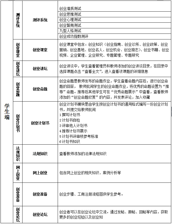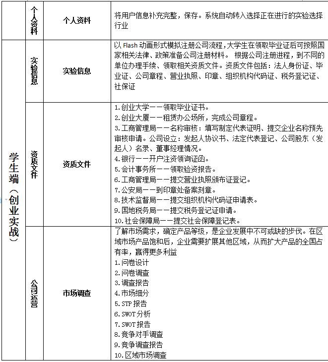 關鍵詞:大(da)學(xue)生(sheng)創業(ye)(ye)模(mo)擬(ni)實(shi)訓實(shi)戰(zhan)教學(xue)平臺 大(da)學(xue)生(sheng)創業(ye)(ye)實(shi)訓教學(xue)軟件 大(da)學(xue)生(sheng)創業(ye)(ye)實(shi)訓教學(xue)系統(tong) 大(da)學(xue)生(sheng)創業(ye)(ye)實(shi)訓室解決方案